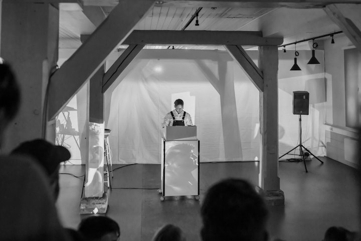 In addition to that two lectures by Anna Schürmer and Leef Hansen on the subject of AUDIO:VISIONEN - Cultures of debate within images and sound introduced the performative part of the evening. Leef Hansen's lecture focused on VISUAL INTERVENTIONS in general as well as aspects of DOCUMENTARY INTERVENTIONS in particular. In this context, he talked about the artistic process of creating the music video as part of the curation of the annual exhibition of the Francke Foundations 2023/24: STREIT, as well as the concept of the music video in general.