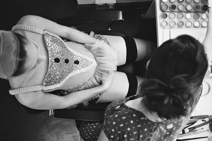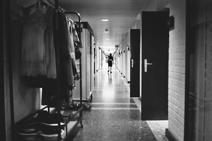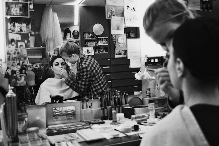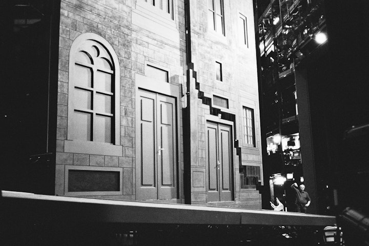 Hidden by a huge vastness of velvet. Isolated from the rows that are still empty. Along the ajar doors of which light emerges and dim voices echo into the tiny corridors, one could grasp his unmistakable aura. Mysterious and close-lipped. A cathedral of steel in which time seems to stand still until the light dims and the thing starts. The sudden loneliness and peace they see, standing in front of the soft and shiny wall of red and blue, changes into promise, when he opens his majestic doors to the gazing eyes. Only then he is showing his real masquerade. A chameleon-like transformation into everything one can wish and imagine.