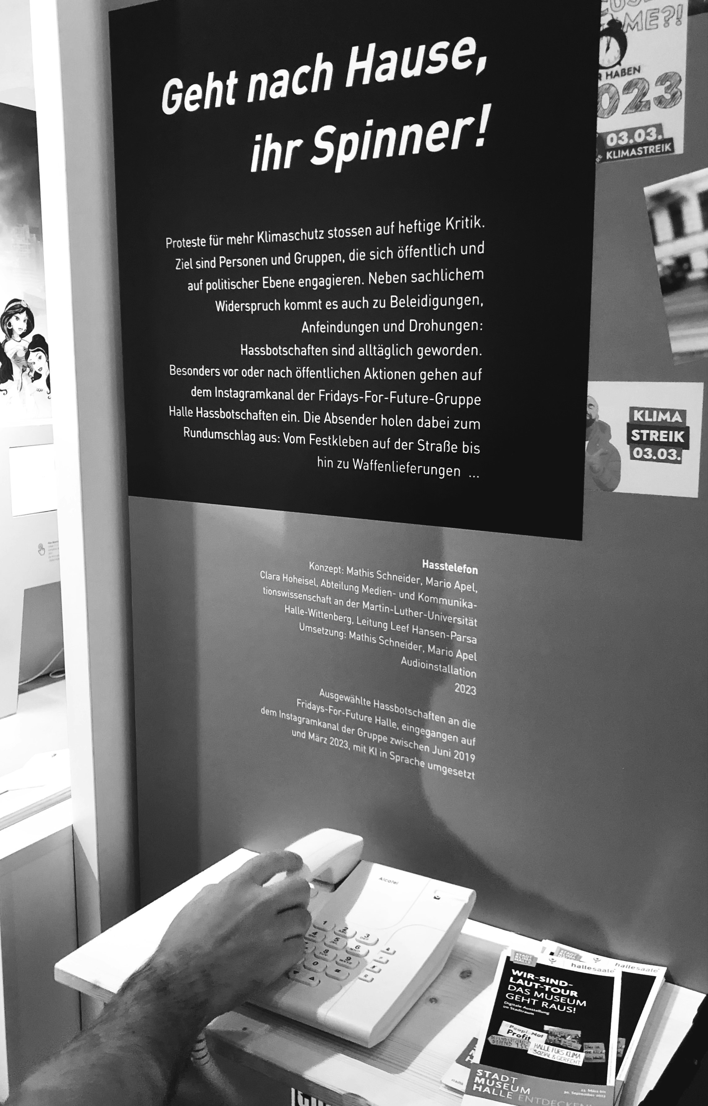 This has led to the practical implementation of some of the students' ideas, such as the »hate phone« as part of the exhibition: “Streit, Zoff und Beef” at the City Museum of Halle (Saale).